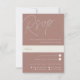 Conçu pour correspondre à nos invitations de mariage Script Watermark, cette carte RSVP basée sur la typographie élégante est parfaite pour les RSVP par courrier traditionnel. Le design comporte des lettres de script surdimensionnées en haut, en ton sur les tons pour un effet filigrane. Personnalisez avec votre date RSVP souhaitée et coutume acceptez et refusez le libellé dans les lettres serif classiques alignées en bas à droite, ainsi que les choix de repas ou les sélections d'entrées. Notre colorway en terre cuite est un élégant mélange de neutrales terreux, avec du lettrage chaud blanc rose taupe sur un arrière - plan en terre cuite.