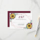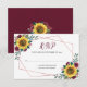 Ces cartes RSVP présentent un design floral aquarelle avec des tournesols, des fleurs bordeaux et un cadre géométrique en or faux rose. Personnalisez-le avec votre date. Ces cartes font partie d'une collection qui comprend une gamme de papier à lettres mariage et d'autres articles mariages correspondants. Veuillez consulter la page de collection ou visiter notre magasin pour voir la gamme complète.