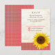 Les tournesols dans un pot Mason sur fond d'écorce de bouleau sont les vedettes de cette suite de faire-part de mariage champêtre rustique. Les éléments à carreaux rouges ajoutent une touche de charme décontracté.