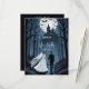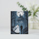 This wedding confirmation card for a Halloween-themed celebration combines mystery and elegance in a unique design. The silhouette of the couple walking through a dark forest toward a haunted castle creates a gothic and romantic atmosphere that will make your event unforgettable.
