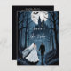 Wedding Couple in Spooky Forest Toward Haunted Castle Confirmation RSVP Cards with QR Code.