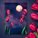 Cartons Réponse Tulipes rouges, Pleine lune et étoiles Mariage de