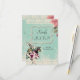 Alice in Wonderland Wedding Carte RSVP avec lapin blanc, bleu Turquoise, dentelle et rose rose.