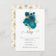Turquoise - roses aquarelles shabby-chic sarcelle et feuillage à motif de feuille d'or faux mariage rsvp personnalisable aux spécificités de votre événement.