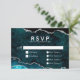 Carte RSVP de mariage Agate Turquoise et Argent avec jusqu'à 4 options de repas vous pouvez customiser.
