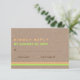 Typographie moderne et rayures minimaliste mariage rustique coloré RSVP réponse ou carte de réponse qui comprend du texte dans une grande police moderne en corail pêche et chartreuse couleurs et rayures vert sur papier d'apparence de l'artisanat de carton. Texte en marron. Au lieu du mot "et" il y a le symbole plus dans un cercle corallien. Ce design moderne et contemporain et personnalisable modèle mariage fait partie d'un ensemble ou d'une collection de mariages, a une atmosphère vintage / rétro et est parfait pour un mariage décontracté printemps et automne ou automne. Notez qu'il n'y a pas de vrai carton que des IMAGES IMPRIMÉES.