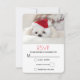 Une carte RSVP avec une adorable photo d'un mignon chien blanc portant un casquette de Noël rouge.