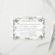 Les caractéristiques de conception comprennent un feuillage et des branches de verdure mélangés aquarelles dans diverses nuances de vert avec des éléments de feuilles de design doré imprimés. Le dos présente des branches assorties sur un cadre géométrique doré. Ce design propose 3 (trois) choix de repas. Un buffet et 2 (deux) choix de repas sont également disponibles. Consultez le lien de la collection sur cette page pour trouver ces articles et les produits correspondants de ce design.