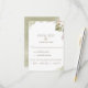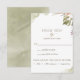 Carte de réponse RSVP élégante avec possibilité d'ajouter en bas des options de repas ou un message personnel pour les invités. Taches d'aquarelle vertes douces encadrant la carte et détails exquis de feuilles de palmier, de feuillage et de fleurs en aquarelle dans le coin droit. Design dans des tons de vert, olive, blanc, crème, pêche, lavande et lilas. Dos avec une texture d'aquarelle verte élégante. Fait partie de notre "Collection de feuilles de palmier florales vertes" avec une variété de produits coordonnés disponibles.