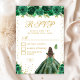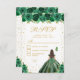 Cette carte rsvp sweet sixteen élégante et glamour présente une belle princesse aux cheveux brunes et à la peau claire dans une robe de boule verte. Le texte combine écriture manuscrite et polices sans serif modernes pour un look élégant et sophistiqué. Les compositions florales, les papillons et les confettis d'or créent un mélange parfait de rustique et de chic. Graphiques par www.etsy.com/uk/shop/SunflowerDayLove