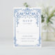Élégant éditable facile à utiliser modèles mariage, plus d'articles (invitations, rsvp, cartes de remerciements, papeterie & décoration) avec le même design sont disponibles dans le magasin. Pour plus de personnalisation, cliquez sur "Personnaliser ce modèle", puis sur "Modifier à l'aide de l'outil de conception". Elégante carte RSVP Vintage Blue Garden Floral Wedding.