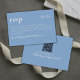 Faites en sorte qu'il soit facile à vos invités de RSVP pour votre grande journée avec cette carte RSVP QR Mariage Vieux argent bleu intemporel ! Cette conception comporte une police de script et un arrière - plan bleu intemporel. Personnalisez vos détails et le code qr du site mariage au dos de Zazzle ! Vous avez une demande personnalisée ? Message-moi !