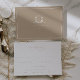 Elégante verdure ornée crête, carte de mariage rsvp avec choix de repas. Mariage monogramme moderne et intemporel crête en beige avec modèle de typographie minimaliste tendance.