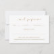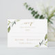 Carte RSVP de mariage avec choix de repas et demande de chansons sur le dos : Cette carte rsvp permettra à vos invités de choisir leur chanson préférée et de faire leur choix de repas (au dos). Si vous n'en avez pas besoin, vous pouvez supprimer certains ou tous les éléments situés à l'arrière. Ce design présente une belle aquarelle de verdure aux coins du texte doré. Vous pouvez cliquer sur "Personnaliser plus loin" pour supprimer ou ajouter du texte au verso ou modifier votre couleur de texte.