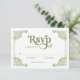 Une carte RSVP élégante avec un cadre de Chinoiserie fantaisiste et des tons doux vert olive. Un mélange gracieux d'art vintage et de détails raffinés, parfait pour une célébration classique mais unique.