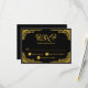 A matching RSVP card designed in the Cinematic Vintage style and gold and black with subtle filmgrain/dust overlay. Completes your editorial wedding suite with a cohesive, nostalgic look. Fully editable. The card has rsvp circles,a decorative frame and vintage font in faux gold.