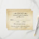 Des tourbillons décoratifs et des fleurs encadrent cette élégante carte de réponse mariage d'inspiration vintage. L'arrière - plan d'ivoire rustique est imprimé avec une texture de papier parchemin vieilli. Personnalisez le texte RSVP personnalisé avec votre date d'échéance de réponse. Cette version inclut des options de dîner listées afin que les clients puissent commencer leur préférence d'entrée plaqué.