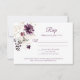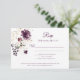 Élégantes fleurs d'aquarelle violet foncé sur des contours floraux esquissés d'or avec des fleurs blanches ajoutées, et feuilles violets et verts RSVP. Le dos de la carte est une texture violette riche avec des contours de fleurs dorées. Une invitation correspondante est disponible.