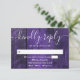 Une carte RSVP en bois rustique violet avec vos détails dans la typographie moderne. Conçu par Thisisnotme©