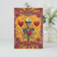 Je t'aime à mort. Carte valentine de style mexicain. Squelette et coeurs