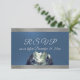 Design features a watercolor mountain scene on the front bottom on a blue satin background and trimmed with silver ribbon on the front. The back has details for the recipient to fill out. Designed to coordinate with the Watercolor Mountain Wedding Invitation Collection. To change details click «Personalize». To move the text or change the text size, font, or color click «Click to customize further»