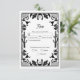 Un design moderne de cowboy occidental avec des éléments dessinés à la main d'un crâne de vache, des fers à cheval, des ornements floraux et des cactus. Le mariage à bordure florale noir et blanc est orné de fleurs dessinées à la main, de cactus, de crâne de vache et de fer à cheval. Ce mariage campagnard contemporain moderne de style occidental est idéal pour toutes les saisons. Un élégant ranch noir et blanc, une ferme ou une grange design avec des illustrations dessinées à la main. Une carte de réponse RSVP à thème de mariage pour cowboy de Western Country avec des éléments modernes et élégants. Des invitations de mariage et d'autres articles de papeterie sont également disponibles.