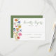 Complete your wedding stationery with this whimsical folk art floral wedding RSVP card featuring a colorful watercolor border along the left side with stylized blooms and botanical accents in shades of pink, golden yellow, blue, and soft green. The design is paired with a flowing handwritten green script and classic serif lettering, creating a charming yet polished look. Ideal for garden weddings and spring and summer weddings, this floral wedding response card brings a playful, artistic feel while coordinating seamlessly with the matching wedding suite.