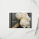 Un rsvp de mariage avec une photo d'un bouquet de roses blanches avec des tiges enveloppées dans la ficelle de burlap sur un arrière - plan de bois d'écorce. Personnalisez avec les détails de votre occasion sur le côté opposé. com