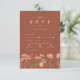 Elevate your wedding stationery with this boho fall rustic floral terracotta clay beige wedding RSVP enclosure card, a perfect addition to your invitation suite that captures the warmth and charm of an autumn celebration. Featuring original hand-painted watercolor wildflowers by artist Catherine Sweetman, the design showcases a stunning meadow in seasonal hues of burnt orange, terracotta, peach, coral, yellow, purple, soft pink, and burnt umber. The bohemian rustic aesthetic is complemented by elegant script typography, creating a beautiful balance of nature-inspired design and modern style. Easily customizable through a user-friendly template, this RSVP card includes space for guest details such as number of attendees, meal choices, and food allergies, along with a convenient QR code linking directly to your wedding website. Ideal for boho weddings, rustic fall ceremonies, or any couple looking to add a touch of whimsy and elegance to their celebration.