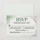 A calm sage‑washed background and soft botanical detailing give these Willow Sage Wedding Response Cards a serene, nature‑inspired elegance that feels both modern and timeless. The gentle watercolor gradient creates an airy, organic foundation, while the subtle foliage adds depth without overwhelming the clean layout. Thoughtfully designed fields for attendance, guest count, and dietary needs keep communication clear and organized, making it easy for guests to reply. Perfect for garden, rustic‑elegant, outdoor, or nature‑inspired weddings, these RSVP cards coordinate beautifully with the full Willow Sage suite for a cohesive, refined presentation