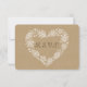 Élégant mais décontracté, ce Mariage RSVP est parfait pour tout amoureux de la nature. Des feuilles de dentelle stylisés, des pinecones, des glands et des fleurs forment un coeur avec un aspect arrière - plan de papier kraft rustique. Customisez avec votre propre texte. Illustration d'origine par pj_design. S'il vous plaît, consultez mon magasin pour plus de ce genre.