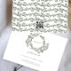 monogramme classique blanc & vert haut de gamme design classique botanique encadré de mariage de couronne _________________________________________________________________________________________________________________________________________________________________________________________________________________________****************** Cette collection présente des modèles monogrammés personnalisés avec une couronne et un cadre tissés de manière complexe, qui incarnent l'essence d'un mariage classique et mémorable. Profitez de la célébration de la tradition et du design classique. Chaque design peut intégrer le monogramme classique et le design de couronnes, en donnant le ton parfait et élégant pour votre journée. Cette collection de mariages formels comprend des invitations de mariage, des cartes RSVP, des cartes de menu, des numéros de table et des cartes de remerciements, et presque tout ce que vous pouvez imaginer ajouter à votre journée de décoration et de cadeaux de conservation. Des matériaux de haute qualité sont utilisés en production et assurent une durabilité sans compromettre le style et l'élégance. _______________________ ce modèle de conception est entièrement modifiable et personnalisable par vous le client - cliquez sur personnaliser un autre bouton si vous souhaitez déplacer, ajouter, supprimer ou apporter des modifications importantes à la conception ___________________________________ *si vous avez des questions ou besoin d'autres options de DESIGN veuillez me contacter ________________________ *si vous avez des questions sur la LIVRAISON ou la PRODUCTION, contactez ZAZZLE HELP OU LE SERVICE CLIENT à l'adresse https://help.zazzle.com/
