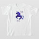 Cette licorne bleu caricature tourne au milieu des étoiles. Tête légèrement tournée vers le spectateur, jambes courbées sous le galop médian. image ©T.A.Paxton avec étoiles par hawksmont. Entièrement personnalisable, mais limité aux t-shirts légers parce que le bleu est un peu sombre et se fond dans les chemises plus foncées.