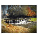 Belle et pittoresque image d'une petite cascade aux eaux écrasantes tombant sur de petits rochers dans un ruisseau. Arbres et feuilles en vert, orange et jaune automne couleurs, avec herbe verte. Impression photographique parfaite pour n'importe quelle maison ou bureau pour apporter l'extérieur à l'intérieur. Ajoutez le cadre et/ou le tapis de votre choix.