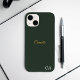 Une coque de téléphone élégante aux tons vert forêt avec un prénom couleur or et des lettres monogrammes en blanc. Une jolie idée-cadeau pour une femme classe et élégante. Convient également aux hommes chics et distingués.