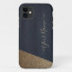 Arrière - plan doré brillant avec marine pour téléphone pour diverses occasions pour des amis ou des membres de la famille. avec un élégant script initial et signature de script en or. Unique, moderne et design. Sélectionnez votre modèle de périphérique. Cliquez sur le bouton Personnaliser pour le customiser avec votre texte ou votre nom.