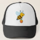 Abeille heureuse de bande dessinée volant autour avec un pot débordant de miel délicieux. Illustration de vecteur. La couleur d'ensemble autour de l'abeille est : #AEDFE8 ou R : 174 G : 223 B : L'arrière - plan 232 est transparent ainsi vous pouvez le customiser à votre favori.