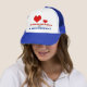 Adorable Paraguay Drapeau Coeurs Patriotique Trucker Chapeau avec l'inscription "Paraguay" affichée sur la face du casquette. L'inscription est imprégnée du motif et des couleurs du drapeau national du Paraguay. Deux coeurs rouges, un grand et un petit finissent le design. Les coeurs sont entièrement personnalisables ou amovibles à l'aide de la fonction "Customiser!". La couleur casquette de base complète très bien le design. Ce charmant casquette est un cadeau unique et charmant. © PaysDuMonde