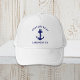 Le casquette du capitaine de bateau sur le thème nautique présente une illustration d'une ancre bleu marine classique et de son nom et du nom de son bateau en lettres bleu marine élégantes.