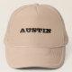 Un chapeau de camionneur de couleur kaki qui dit 'AUSTIN' sur le devant. Vous pouvez aussi créer votre propre casque de camionneur américain avec vos propres photos, oeuvres d'art, mots et graphiques ! Il y a une variété de couleurs différentes disponibles pour vous et elles sont disponibles pour les hommes et les femmes.