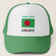 Un camionneur personnalisé qui montre le drapeau bangladais et le mot, BANGLADESH ci-dessous, dans les couleurs du drapeau. Ci-dessus est un endroit pour un nom, en lettres vertes, afin que vous pouvez personnaliser le casquette pour vous-même ou un cadeau. Le drapeau est vert avec un cercle rouge off centre. Cool à porter à une réunion de famille.