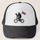 Road cyclists can cruise downhill to Honokaa and head either to the Waipio Valley Overlook or the Hawaiian Vanilla Company, do a 16-mile loop through Holualoa with a lunch break at Holuakoa Cafe, or explore back roads of Kaui. This design is bigfoot riding a bike holding a Hawaii flag and giving a shaka sign.