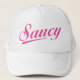 Casquette blanc de camionneur avec un logo hardi rose.