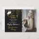 Invitation de la fête de graduation en blanc sur les couleurs noir et or. Créé avec du casquette blanc, des ballons blancs et de la parties scintillant en faux or, avec espace pour votre propre photo. Tous les textes avant et arrière déjà formatés et prêts pour vos propres détails de texte. Autres couleurs disponibles dans ce même design. Crédit photo : Pixabay image de Lorri Lang
