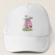 This all white hat features a stylish blush pink watercolor golf bag filled with clubs, sitting on a patch of green grass. The design includes a simple serif initial monogram placed right on the bag, making it feel like a natural part of the artwork. The letter is shown in a dark gray, almost black, to match the bag’s accents, but you can change it to any color you prefer. A fun and functional accessory for a day of golfing—perfect for birthdays, Christmas, Mother’s Day, or any special occasion. You can also change the hat color to suit your style.