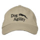 Ce casquette brodé a une silhouette Whippet sautant en noir sur le mot "Agility", avec "Dog" de l'autre côté. Fantastique casquette Whippet pour toute personne qui teste avec sa hache.