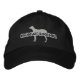 Ce casquette Rhodesian Ridgeback cool est brodé avec la silhouette de la race de chien, debout avec son nom imprimé devant. La silhouette du terrier est gris argenté et le contour du texte blanc. Le design semble extraordinaire sur nos casquettes noirs !
