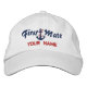 Un casquette First Mate personnalisé dynamique en casquette brodé de style nautique rouge, blanc et bleu qui fera une impression sur ou hors du bateau. Faites de cette broderie de conception d'ancre de corde une broderie aussi unique que vous êtes avec votre nom, votre emplacement, ou le nom de votre bateau. Utilisez le lien pour nous contacter avec vos demandes spéciales de design ou pour obtenir de l'aide pour tout projet de personnalisation.