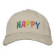 C'est un casquette de baseball amusant, coloré et "en détresse" avec le mot HAPPY épelé dans de grandes lettres brodées colorées ! Il fera un cadeau de Noël cool et heureux pour quelqu'un que vous aimez!
