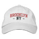 Preppy BROOKLYN NY Brodé en rouge et noir sur casquette en coton blanc. Les couleurs de broderie sont personnalisables à d'autres choix de couleurs en cliquant sur le bouton "Modifier la conception". Vous pouvez également choisir la couleur du casquette sur la page principale de l'article.